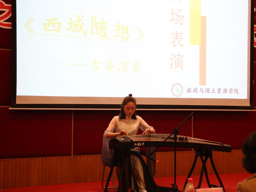 本次比赛由选手自我展示和模拟讲解、导游知识问答和才艺展示等环节组成,期间抽取幸运观众送上大礼。古筝弹奏《西域随想》拉开了帷幕,入围决赛的八名选手进行了自我展示,模拟讲解了安徽黄山、湖北黄鹤楼、苏州拙政园、重庆酉阳桃花源等景点,并通过导游知识问答和才艺展示环节展现自己的专业水平和才艺。大赛通过组委会打分和大众评审结合的方式综合评定获奖名次。评委杨雁老师做点评并给予选手们高度的评价。最终三号选手丁芃获同学获得本次导游风采大赛一等奖。