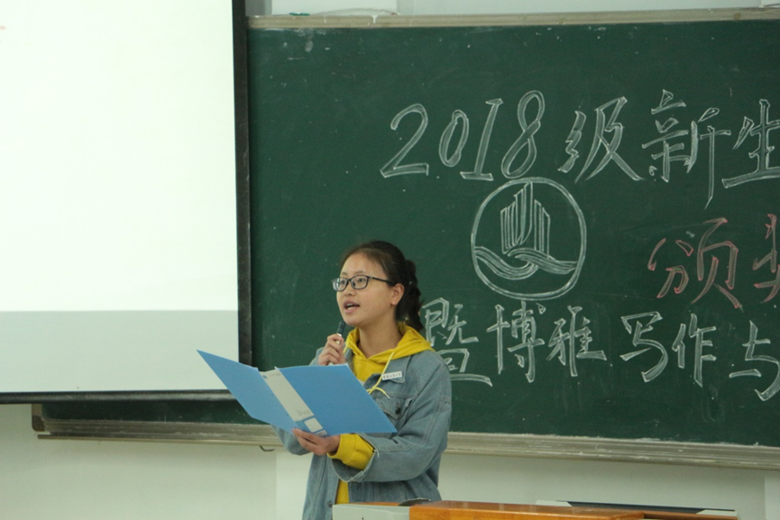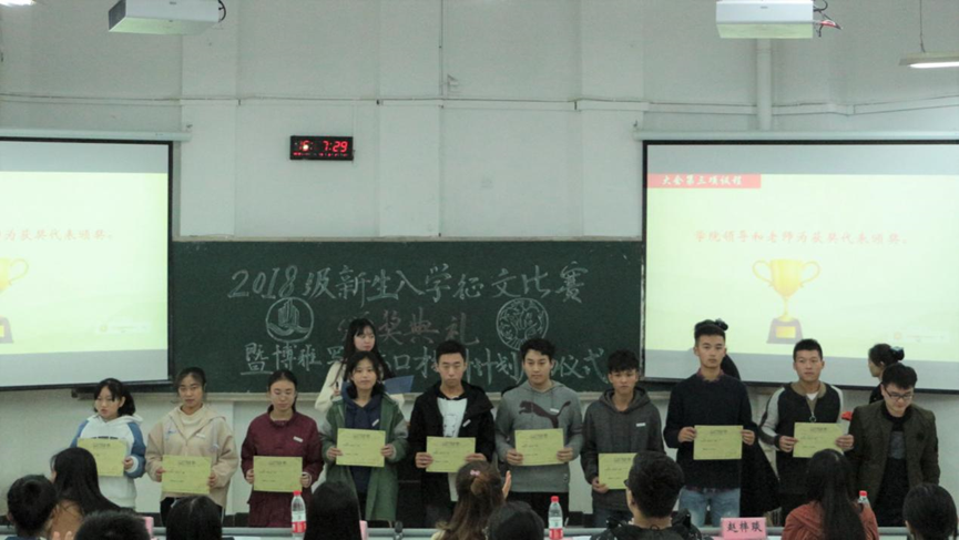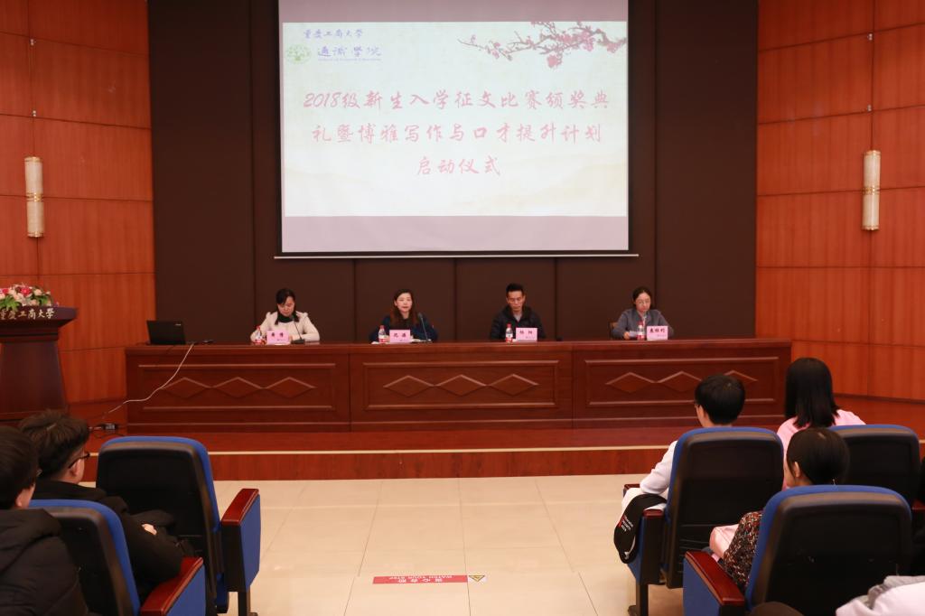 2018年11月9日下午,通识学院分别在兰花湖片区广智楼20211教室和江北校区宏智楼509学术报告厅举行了2018级新生入学征文比赛颁奖典礼暨博雅写作与口才提升计划启动仪式。