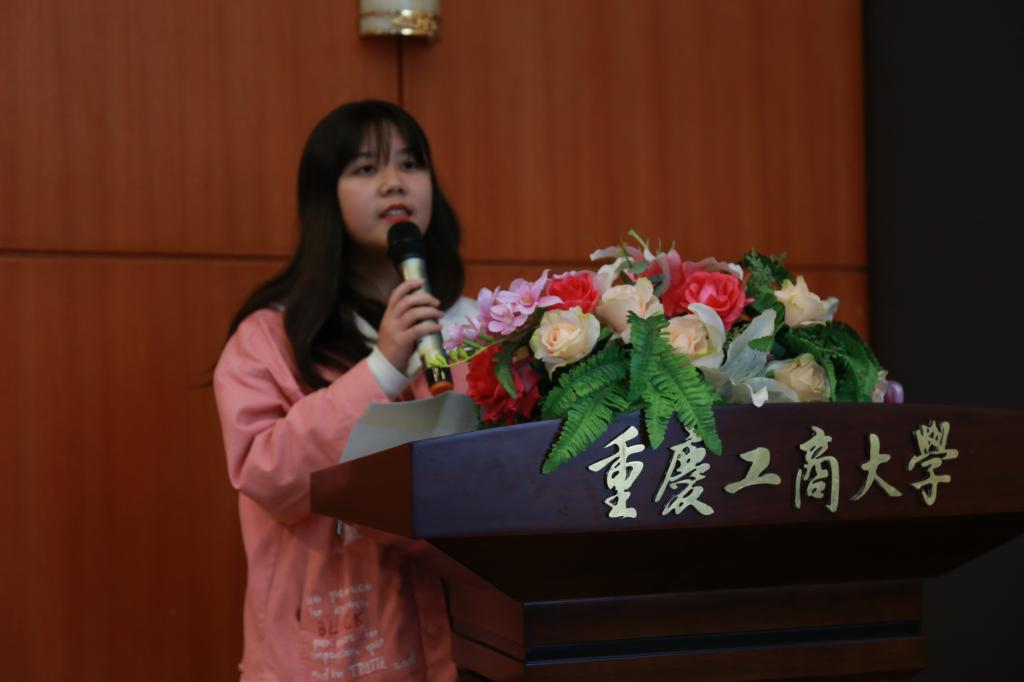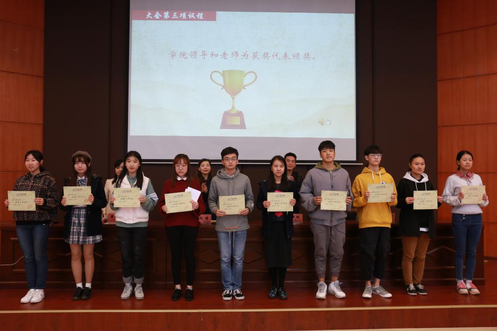 颁奖典礼上,学院领导和老师们为获奖同学代表颁发了荣誉证书和精美的奖品,鼓励他们不断提升自己的写作与口才能力,争取更大的进步。活动中,共有8名获奖同学代表作了分享和交流发言。其中,2018级土地资源管理二班江桂兰、2018级财政四班莫紫琪等6名同学现场朗读了自己的获奖征文。莫紫琪同学在文章中写道:“在这个生机的校园,我可以结交到许多苔岑,引为同调,结金兰之契;可以独当一面,培养自己的自立精神,独自面对风风雨雨;可以以梦为马,追逐更加耀眼的明天……希望大学的自己即便是在繁重的学习任务中仍旧可以有‘一蓑烟雨任平生’的决然,既不曾怠慢梦想,也不轻慢沿途风光。”声情并茂的诵读,让现场的同学深深感受到了她字里行间那份对大学的期待和不懈奋斗的决心。2018级材料二班宋梦雨和2018级法学一班曹阳苗同学交流了他们的获奖心得,并倡议同学们勇争朝夕、不断学习,在人生的风雨路程上,用自己的热血书写青春的华章!