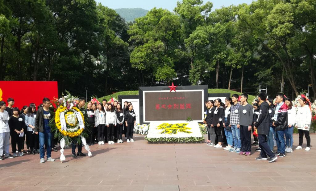 志愿者身着黑衣并佩戴自制的小白花,活动期间秩序井然,肃穆严谨。全体志愿者向先烈墓碑三鞠躬并默哀一分钟是活动中最静默的环节,在这一分钟里,大家心无杂念,仅有对逝者的追忆与哀悼。默哀结束,由会长及干事代表进行了发言。志愿者们安静专注地听着代表们发言,跟随发言人抑扬顿挫的语句,重温了那个动荡年代里那一件件不平凡且鼓舞人心的英雄事迹。发言人呼吁我们要怀着感恩的心去纪念他们,同时也要从他们手里接过建设祖国的担子,努力把我们共同的家园建造得更富强伟大。这是我们每个大学生应知晓,并为之不懈努力的目标。两位发言人的讲话结束后,由志愿者代表为先烈献上花圈,大家也有序地向先烈们敬献上自己的小白花。