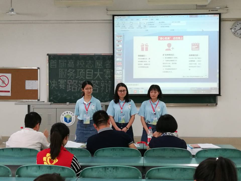 重庆市“奉献青春.志愿同行”高校志愿服务项目大赛是由重庆市委宣传部、市委教育工委、市教委、团市委、市学联主办,针对各高校大学生志愿者活动开展的赛事。全市共有40所高校所申报的132个项目进入复赛评审,经济学院“爱心包裹”——酉阳长期关怀项目成功晋级决赛,通过路演、展位展示等阶段,获得各位评委及其他高校志愿者协会老师、同学的关注及赞赏,最终获得重庆市首届高校志愿服务项目大赛金奖。