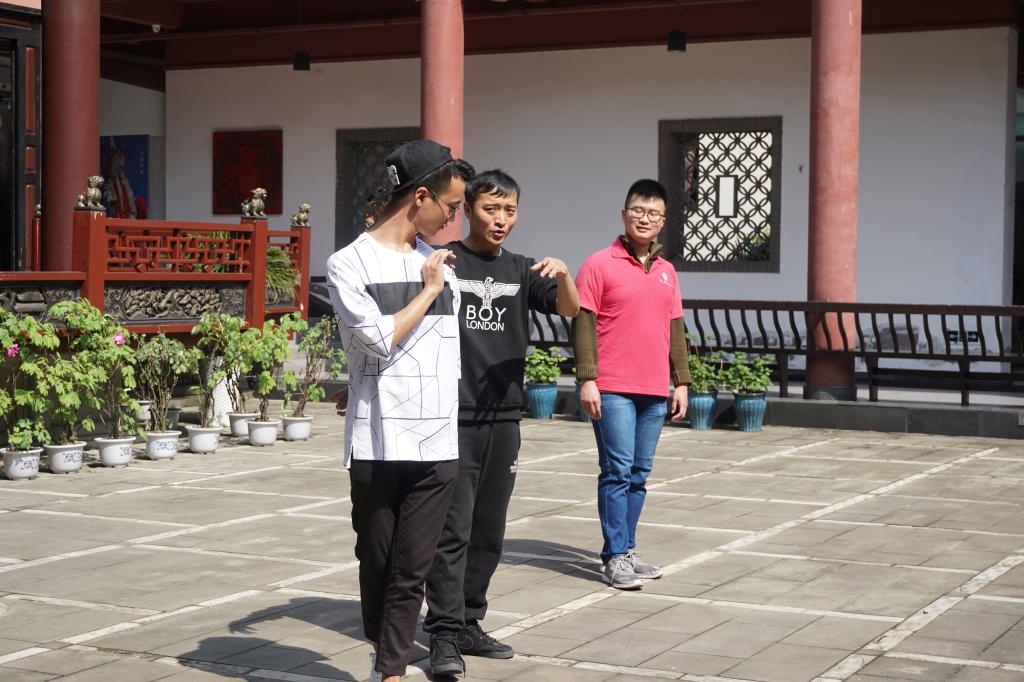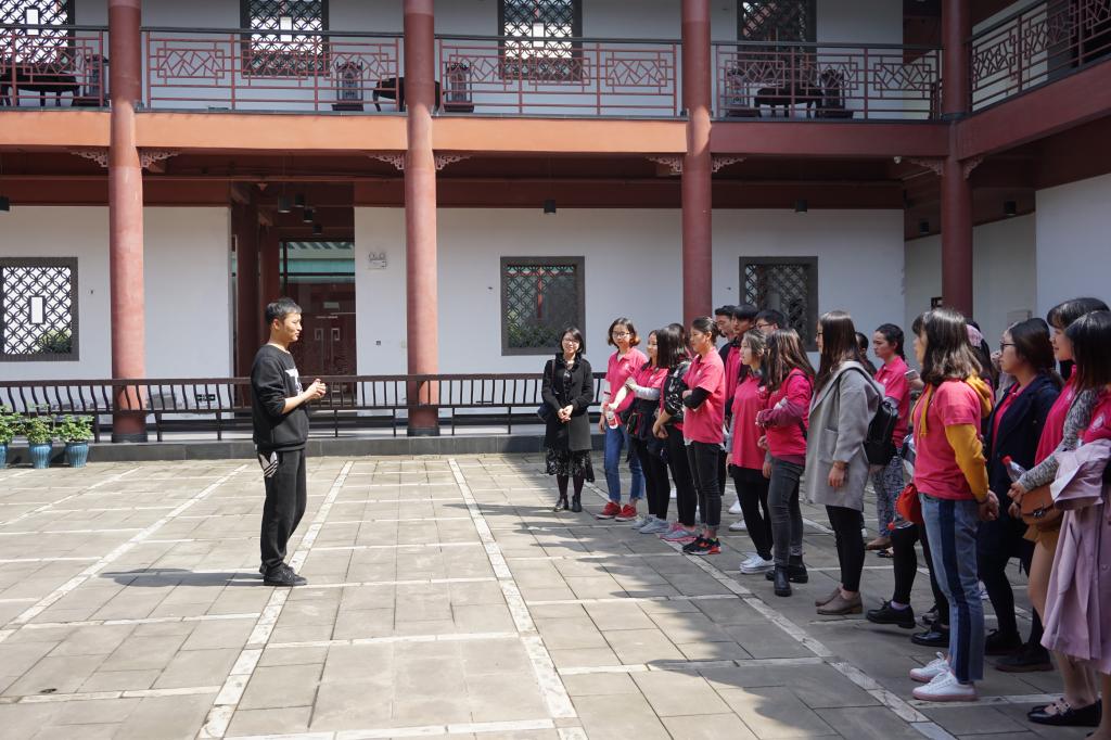 活动的最后一个环节,张严威给大家介绍了古时候的戏台构造,同时介绍戏曲演员的高亮嗓门和热闹的锣鼓主要源于古时吸引四面八方的观众。张严威带领同学们学习古时女子的步态,邀请两名同学现场教学古时男女相见的场景。他惟妙惟肖的演绎和同学活灵活现的模仿,引得现场掌声连连,欢笑阵阵。同学们纷纷表示收益良多,真正感受到了川剧的魅力。