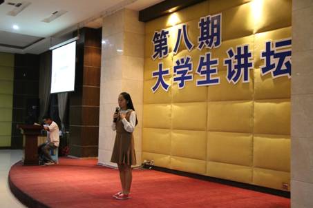 本期讲坛以“如何规划你的大学生活”为主题,主要针对大一新生适应性教育。讲坛主讲人均是获得国家奖学金、综合素质突出的优秀学生,他们是财金学院12级税务专业潘婷婷、环资学院13食品专业李康璐、经济学院12级经济学专业郝瑞敏。潘婷婷从学习和实践两个方面,结合自己对考研、工作、学习的认识,分享了从大一进校参加学生组织、社团,大二之后参加数学建模比赛、“挑战杯”等,到决定出国考研的心路历程以及为此付出的努力。李康璐以自己的大学经历为例,“何为大学,大学何为?”明辨高中与大学的不同之处,是进入大学的第一步。大一新生不能被“读书无用论”“及格万岁”等言论所迷惑所打倒;她还提供了三大好成绩“秘方”:兴趣是最好的老师;自我施压催人奋进;敢于并享受前排。郝瑞敏从自己大学的状态和改变谈起,通过三个板块“学习”、“学习工程”以及“职业生涯规划”切入助人自助的主题,接着通过师从独立、担当、总结自身再评估成长四个方面畅淡了一场富有哲理的结语叮嘱。