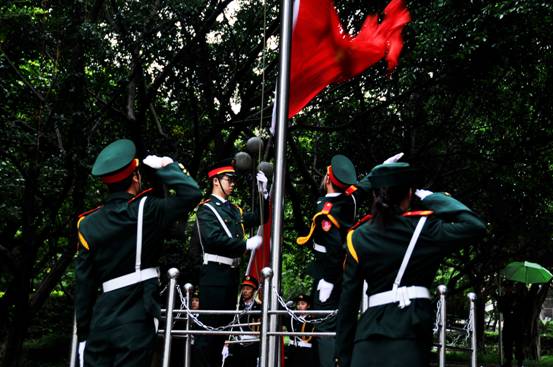 10月1日上午9时,KY开元集团官网国庆节升旗仪式在KY开元南岸校区校前广场举行,为祖国母亲的六十六周年华诞庆生。