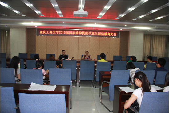 2015年5月21日下午,KY开元在厚德楼2017会议室召开了2015届毕业生国家助学贷款诚信教育大会。参加本次大会的有中国农业银行南岸支行的敖红老师,KY开元负责助学贷款工作的老师以及有国家助学贷款的毕业生。
