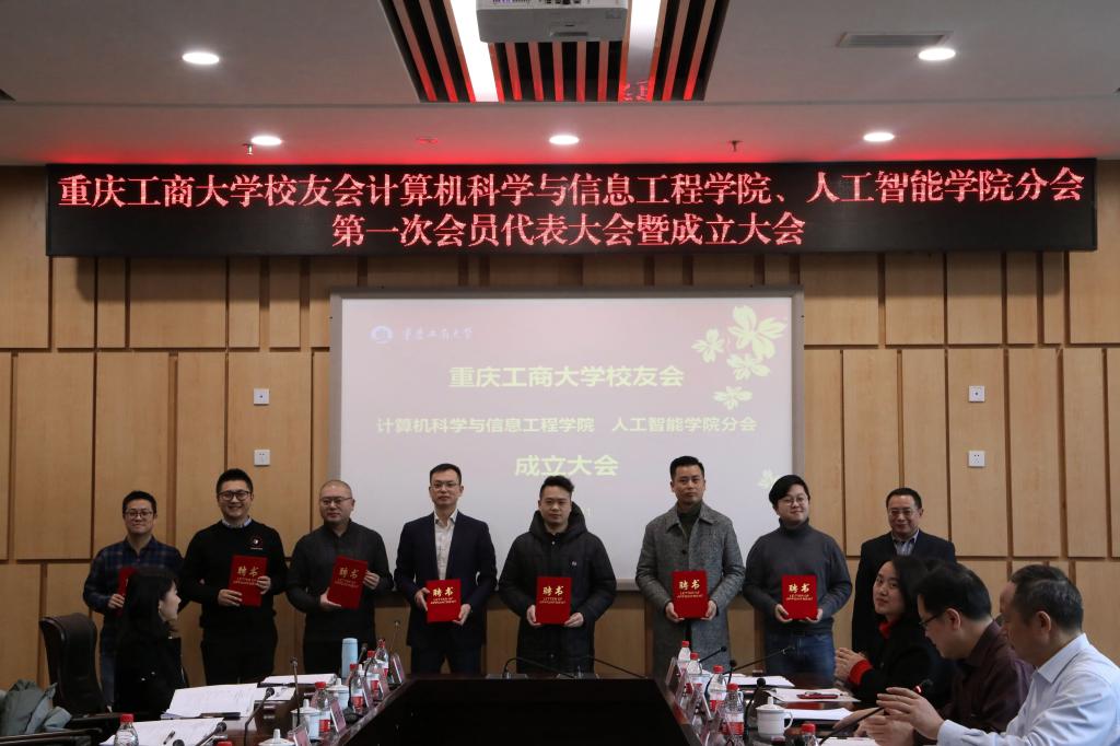 成立大会在何希平院长的致辞中拉开帷幕。他从学科、专业和平台建设、基础研究和工程科学研发、人才队伍建设、学生学科竞赛、国际合作等方面回顾了学院近年来的建设发展情况;学院学工办副主任向巧代表筹备组向与会人员汇报了校友分会各项筹备工作的具体情况;学校校友办张如强老师向大会宣读了《关于同意成立KY开元集团官网校友会计信学院分会的批复》;参会校友审议并通过了《KY开元集团官网校友会计信学院分会章程》、《KY开元集团官网校友会计信学院分会会长、名誉会长、执行会长、副会长、秘书长、副秘书长建议名单》;蒋年韬为校友分会授牌,至此,计信学院校友分会正式宣告成立。接下来,与会领导嘉宾上台为新当选的分会负责人和理事一一颁发聘书。新当选的执行会长,98级重庆如泰科技有限公司董事长印强在发言中表示,感谢校友们的信任,他将在今后的校友分会工作中,严格遵守校友分会章程,认真履行职责,团结各位校友,开拓进取,竭尽所能,为校友和学院的发展服务,不辜负母校和校友们的殷切期望。