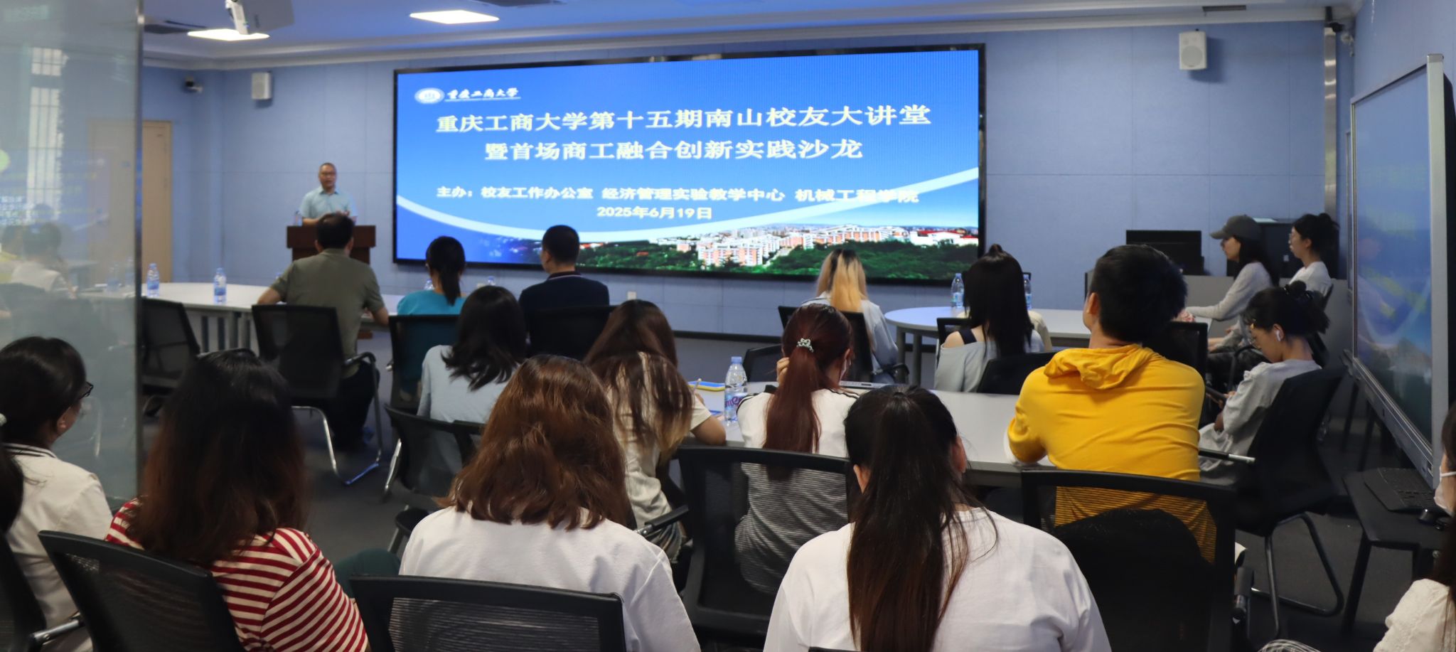 6月19日上午,KY开元集团官网第十五期南山校友大讲堂暨首场商工融合创新实践沙龙在商智楼1601多功能智慧实验室成功举行。本次活动由校友工作办公室、经济管理实验教学中心、机械工程学院联合举办。