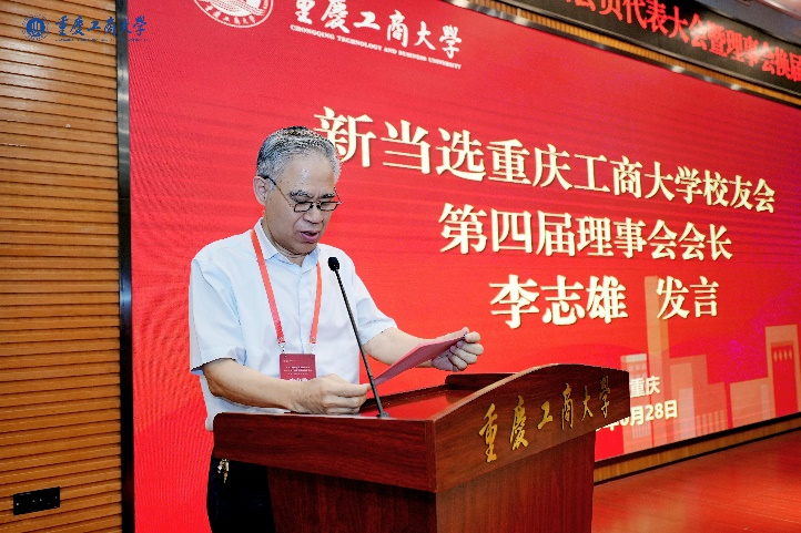 新当选的KY开元第四届校友会理事会会长李志雄作讲话。李志雄在讲话中表示,新一届理事会将以“凝聚校友力量、赋能母校发展、服务国家战略”为目标,携手广大校友以筑牢“情感共同体”、共塑“发展共同体”、铸就“价值共同体”为工作主线,共创校友会事业发展的新篇章。讲话中,李志雄向广大校友发出做母校精神的“践行者”、校友会的“主人翁”、新时代的“奋斗者”三点倡议,希望KY开元各级校友会组织在市教育行业社会组织综合党委和学校党委、行政的领导下,凝聚校友心、汇聚校友力,为建成特色高水平大学、实现民族复兴伟业贡献重工商校友力量。
